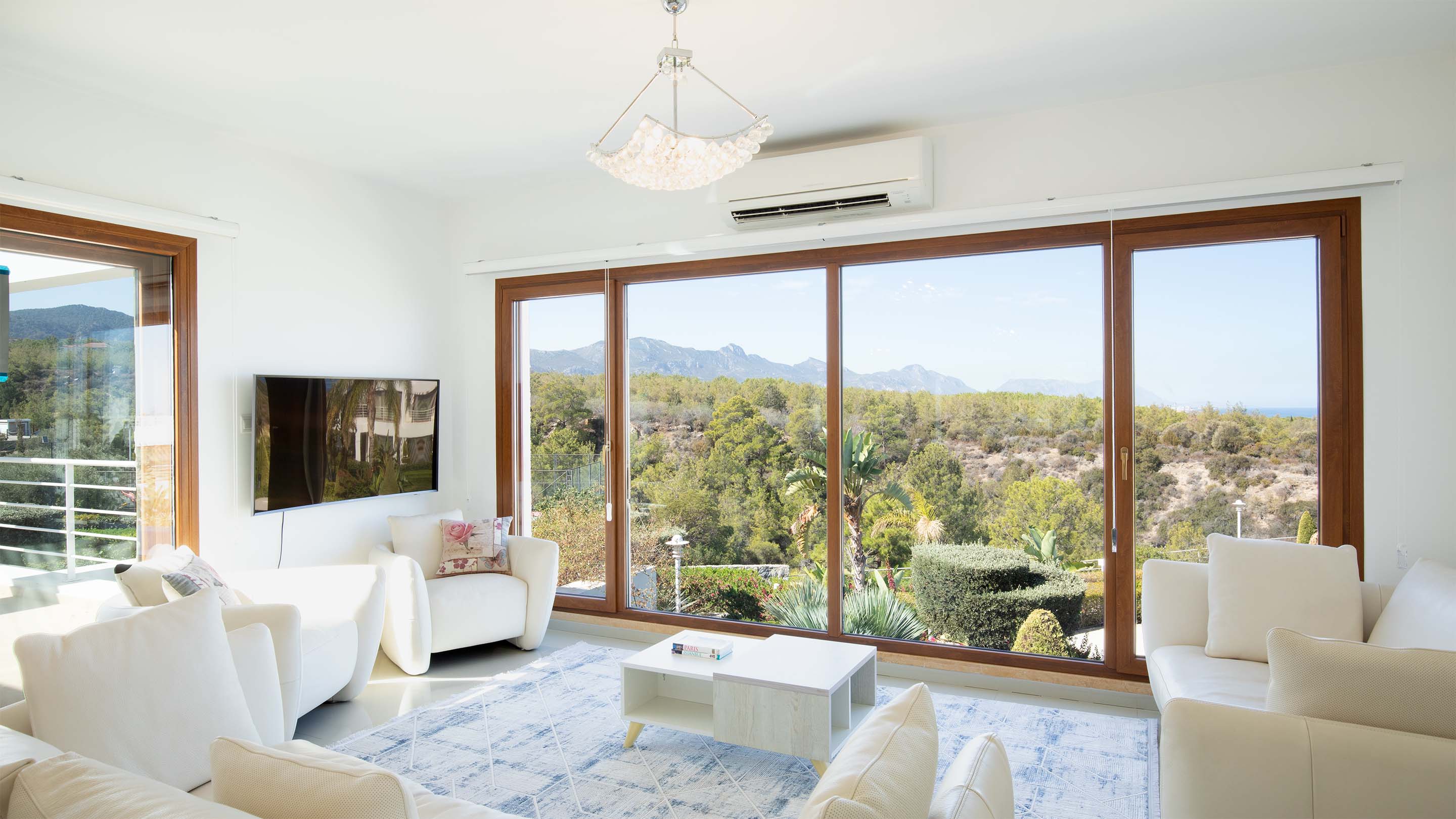 What truly sets this property apart are its breathtaking panoramic views over the Kyrenia mountain range, the protected pine forest, and the Mediterranean Sea. This rare combination of high‑end interior quality and stunning natural scenery creates a living experience that is both refined and unforgettable.
